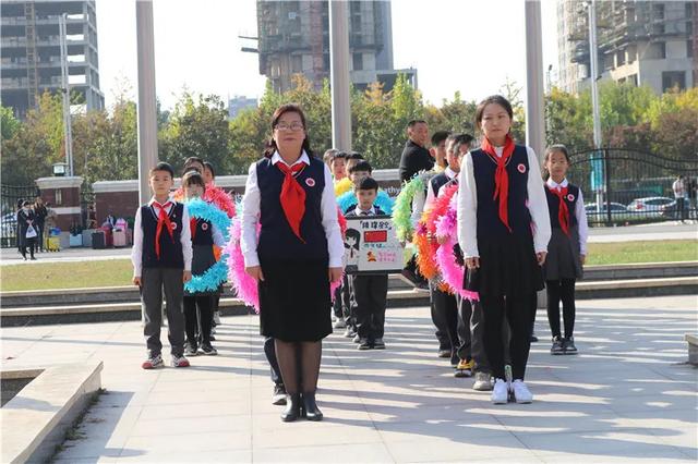 四年级学生以别开生面的方式开启表演,全体学生和班主任李杏老师、生活老师郭玉霞老师均着校服,戴红领巾,伴随着庄严的《少先队队歌》入场,他们目光坚定,饱含深情,庄严肃穆,给了我们“阅兵式”的视觉冲击,让我们看到了当代少先队员的朝气与希望!